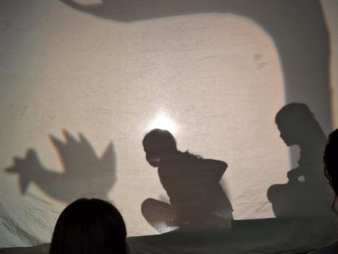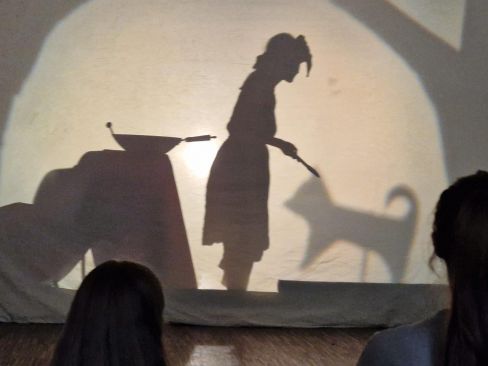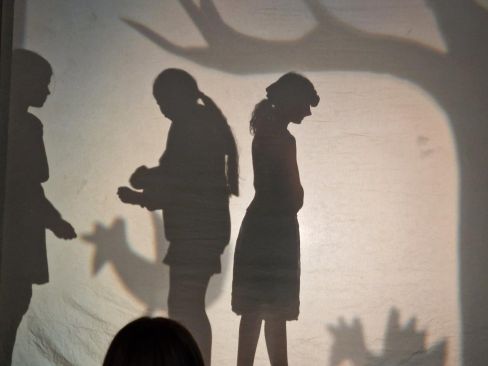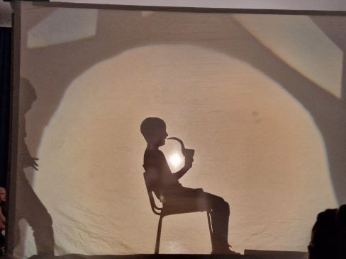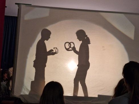 Abwechselnd sprangen die Kinder in ihre Rolle, erzählten die Geschichte, spielten hinter der Leinwand und legten Kulissen auf den Projektor. Mit tollen Bildern und einer erstklassigen Aufführung wurden die Zuschauer zum Staunen und zum Lachen gebracht.